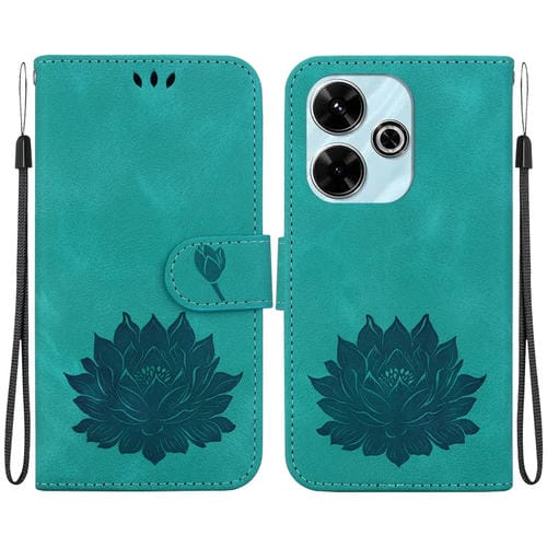 Para Xiaomi Poco M6 4G Lotus Funda de Cuero En Relieve para Teléfono (Verde)
