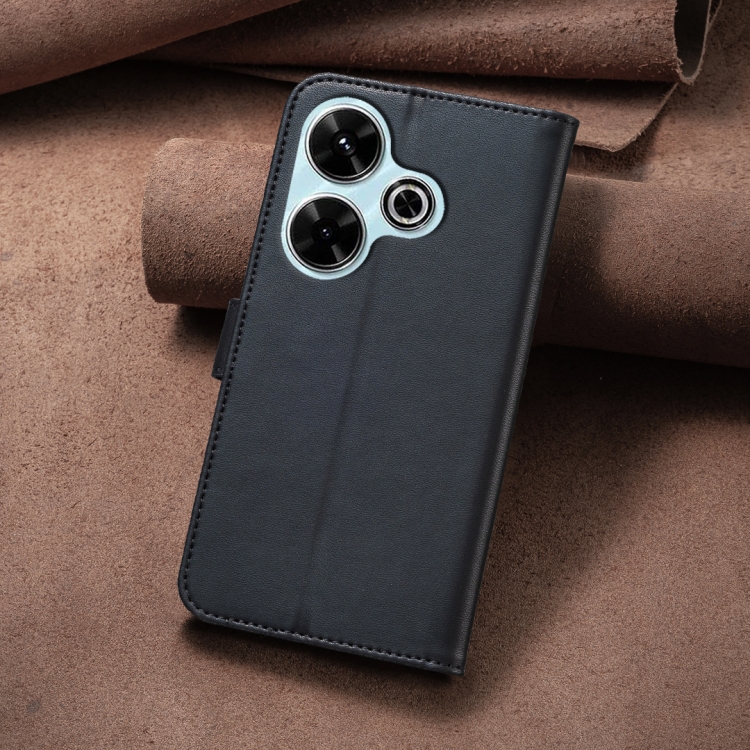 Para Xiaomi Poco M6 4G / Redmi 13 4G Funda para Teléfono de Cuero En Relieve de Cuatro Hojas (Negro)