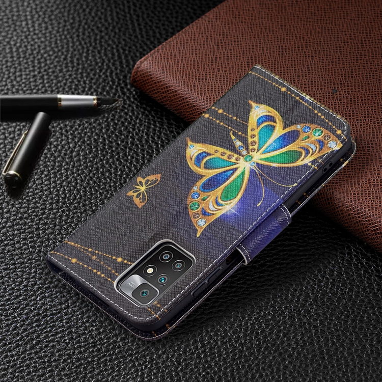 Para Xiaomi Redmi 10 Coloreado Dibujo Patrón Horizontal Funda de Cuero con Soporte y Tragamonedas y Billetera (Mariposa Grande)