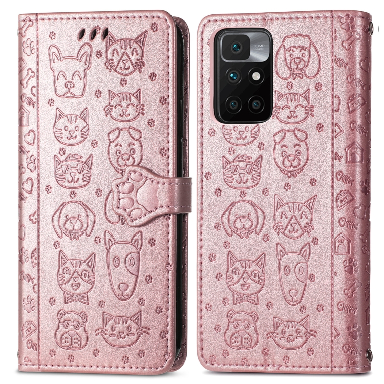 Para Xiaomi Redmi 10 Encantador Patrón de Gato y Perro Estuche de Cuero Horizontal Flip Funda, con Tragamonedas y Tragamonedas y Billetera y Billetera y Cordón de Dibujos Animados (Oro Rosa)