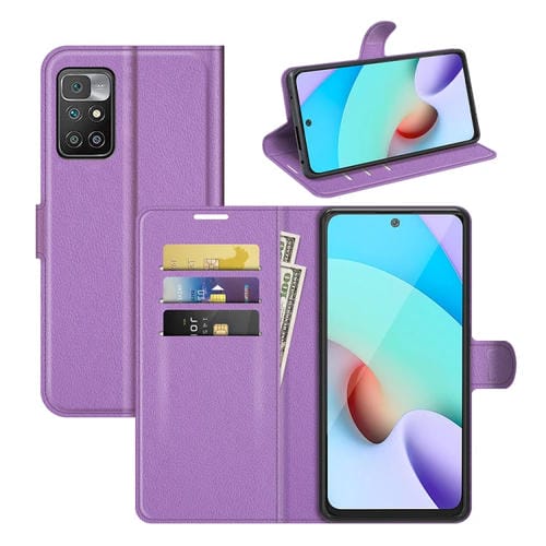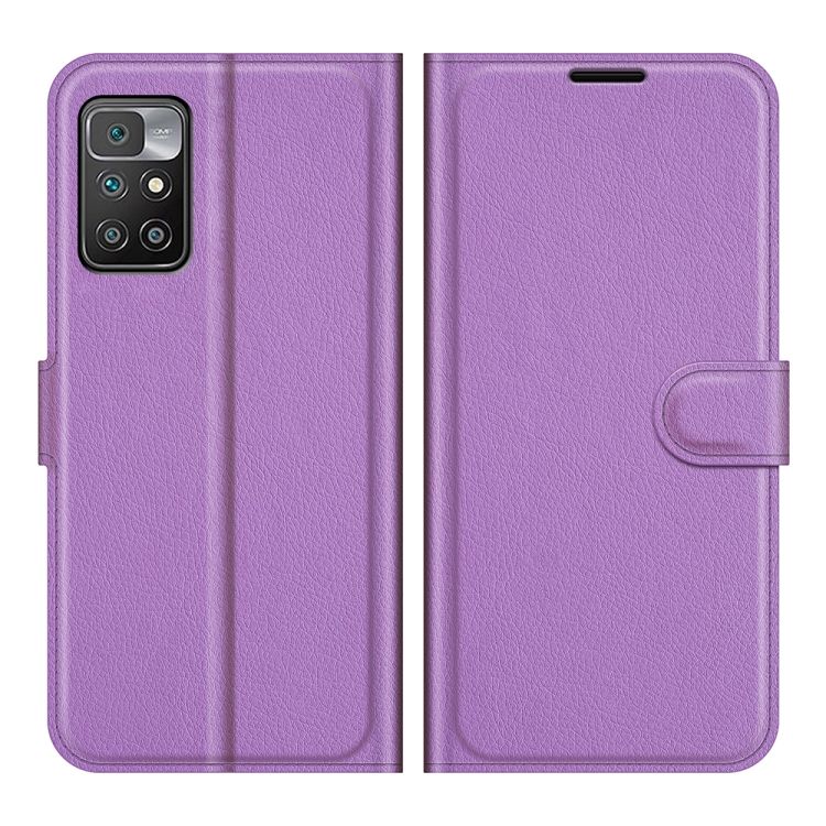 Para Xiaomi Redmi 10 Litchi Texture Horizontal Flip Funda Protectora con Soporte y Tragamonedas y Billetera (Púrpura)