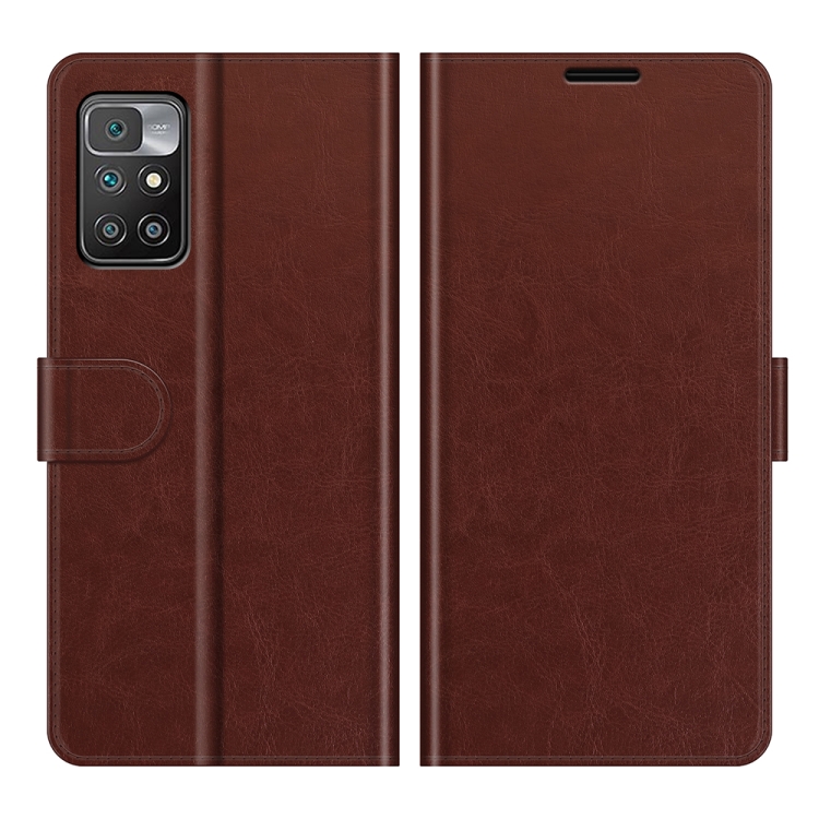Para Xiaomi Redmi 10 R64 Textura Funda Protectora de Flip Horizontal Individual con Soporte y Ranuras para Tarjeta y Marco de Fotografía (Marrón)