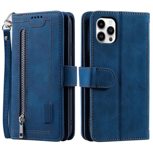 Para Xiaomi Redmi 13 4G Funda de Cuero para Teléfono con Bolsa con Cremallera y Nueve Tarjetas con Cordón (Azul)