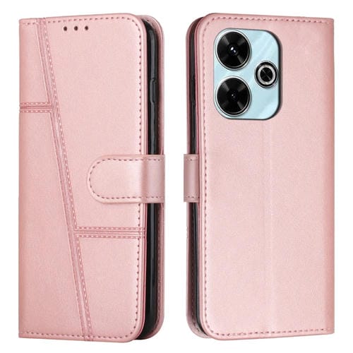Para Xiaomi Redmi 13 4G Funda para Teléfono de Cuero con Hebilla y Textura de Becerro con Costura (Oro Rosa)