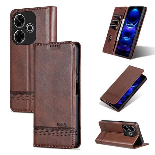 Para Xiaomi Redmi 13 4G Global Azns Funda para Teléfono con Tapa de Cuero con Textura de Pantorrilla Magnética (Marrón Oscuro)