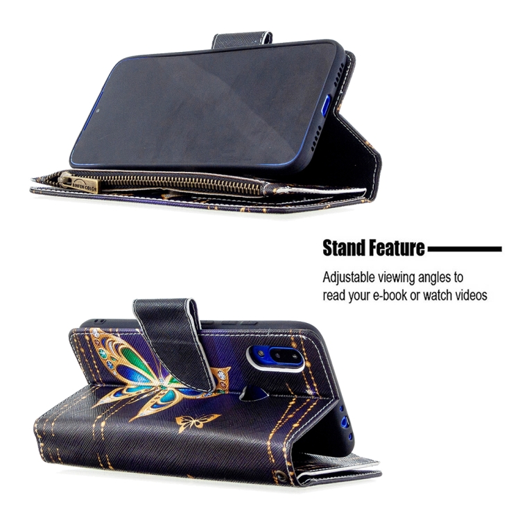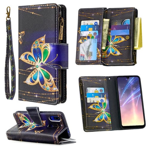 Para Xiaomi Redmi 7 Patrón de Dibujo de Colores Cremallera Funda de Cuero con Tapa Horizontal con Soporte, Ranuras para Tarjetas y Billetera (Mariposa Grande)