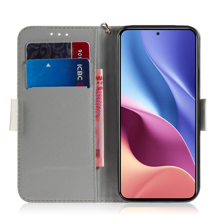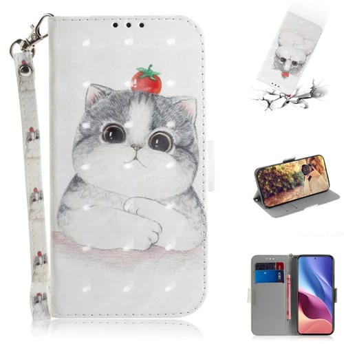 Para Xiaomi Redmi K40 / K40 Pro / Poco F3 3D Dibujo de Color Dibujo Horizontal Flip Horizontal con Titular & Tarjetas Slots & Wallet & Lanyard (Lindo Gato)