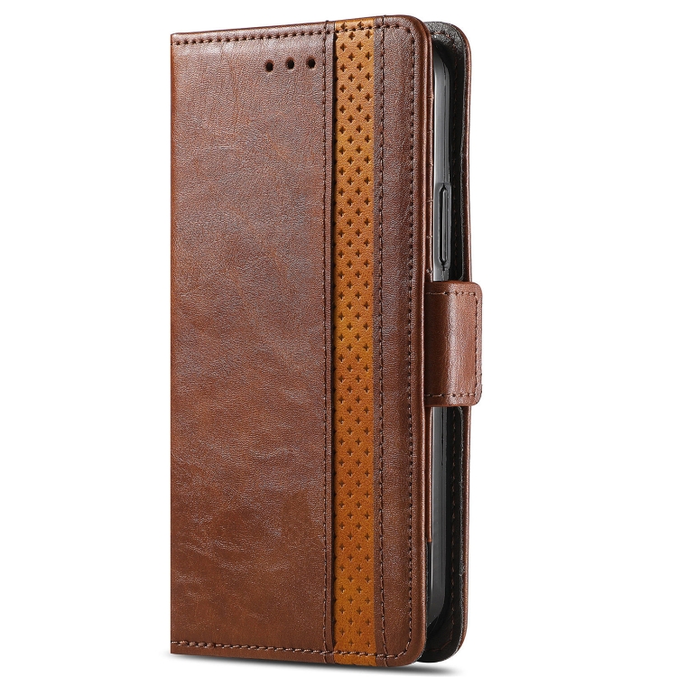 Para Xiaomi Redmi Note 10 5G Caseno Business Empalme Dual Hebilla Magnética Horizontal Flip Pu Funda de Cuero con Soporte y Ranuras para Tarjetas (Marrón)