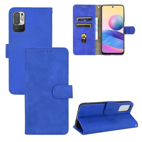 Para Xiaomi Redmi Note 10 5G Color Sólido Siente Siente Hebilla Magnética Horizontal Flip Texture Texture Pu Funda de Cuero con Soporte y Ranuras para Tarjetas (Azul)