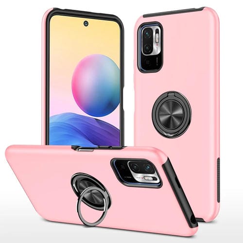 Para Xiaomi Redmi Note 10 5G PC + TPU Funda de Teléfono Magnético a Prueba de Golpes con Titular de Anillo Invisible (Oro Rosa)