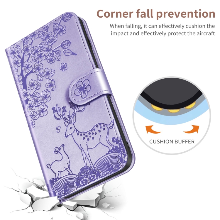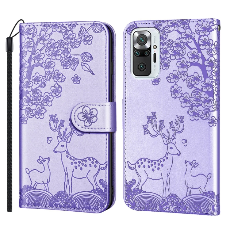 Para Xiaomi Redmi Note 10 Pro Sika Deer Patrón de Estampado En Relieve Horizontal Flip Pu Funda de Cuero con Soporte y Ranura para Tarjeta y Marco de Fotos (Púrpura)