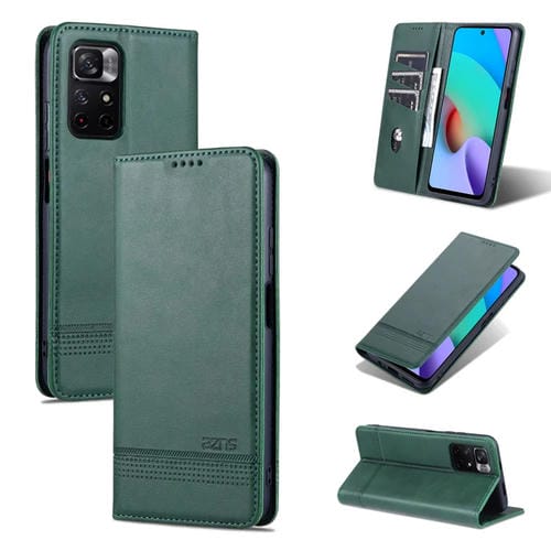 Para Xiaomi Redmi Note 11 Azns Magnético Texture Texture Horizontal Flip Tele Funda con Las Ranuras y El Soporte y la Cartera (Verde Oscuro)