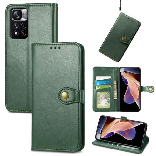 Para Xiaomi Redmi Note 11 Pro / 11 Pro + Caja de Cuero de Cuero de Hebilla de Color Sólido Retro (Verde)
