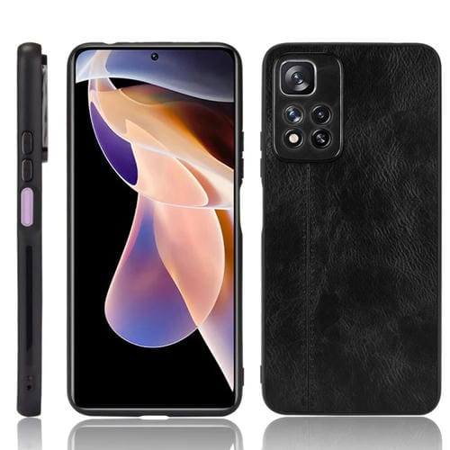 Para Xiaomi Redmi Note 11 Pro Costura de Patrón de Vaca Caja de la Piel (Negro)