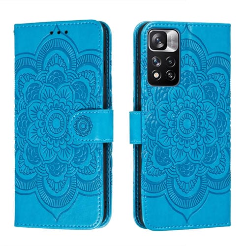 Para Xiaomi Redmi Note 11 Pro Sun Mandala Estuche de Cuero de Patrón de Nieve Mandala con Soporte y Ranuras para Tarjetas y Filtera (Azul)