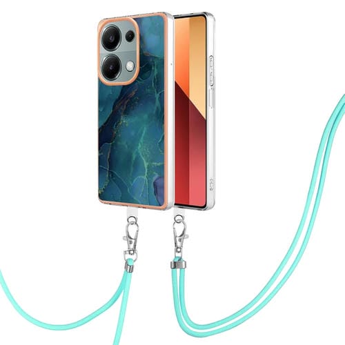 Para Xiaomi Redmi Note 13 Pro 4G Estuche para Teléfono Imd de Doble Cara de Mármol con Galvanoplastia Global con Cordón (Verde 017)