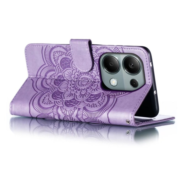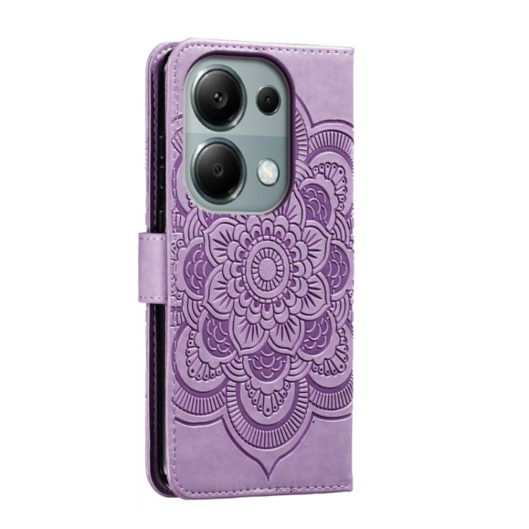 Para Xiaomi Redmi Note 13 Pro 4G Sun Mandala Funda de Cuero para Teléfono con Patrón En Relieve (Púrpura)