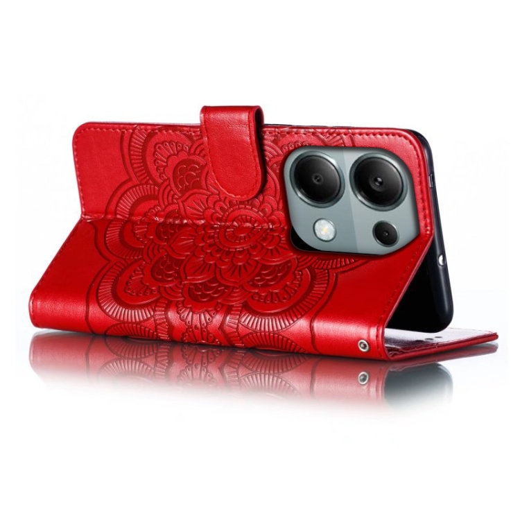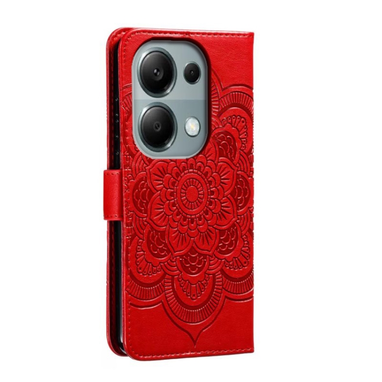 Para Xiaomi Redmi Note 13 Pro 4G Sun Mandala Funda de Cuero para Teléfono con Patrón En Relieve (Rojo)