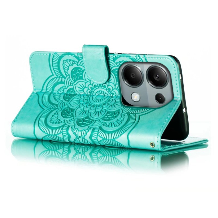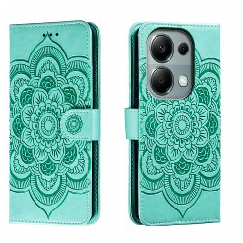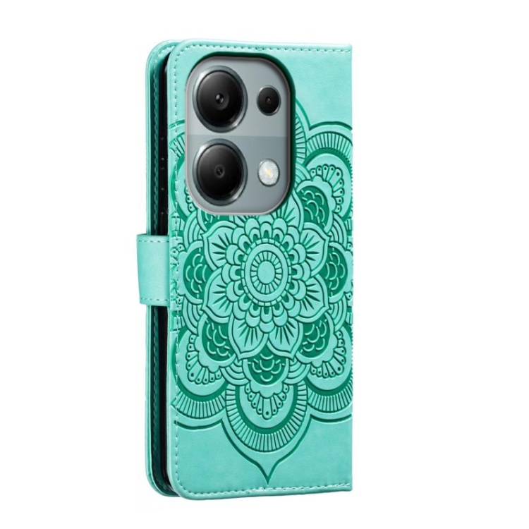 Para Xiaomi Redmi Note 13 Pro 4G Sun Mandala Funda de Cuero para Teléfono con Patrón En Relieve (Verde)
