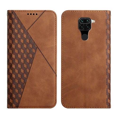 Para Xiaomi Redmi Note 9 Diamond Pattern Splicing Splique Feel Magnetic Horizontal Flip Funda de Cuero con Ranuras y Soporte para Tarjeta y Billetera (Marrón)