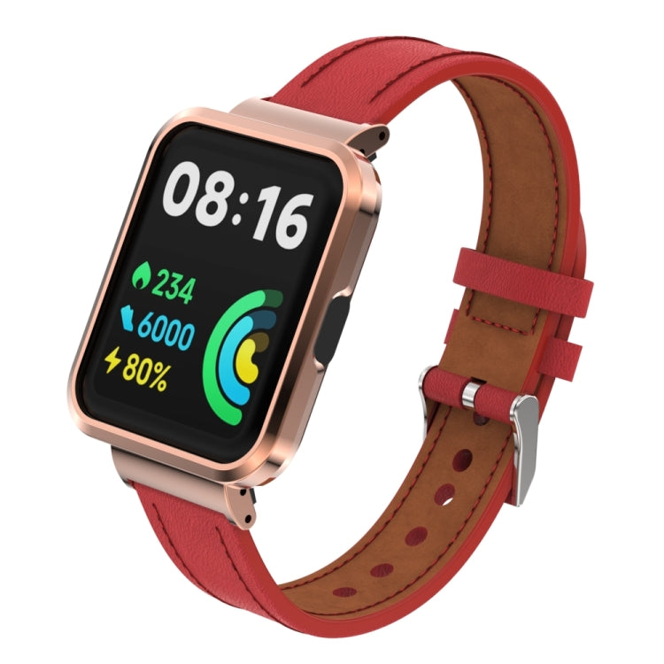 Funda de Metal con Banda de Cuero para Xiaomi Redmi Watch 2 Lite (Rojo)