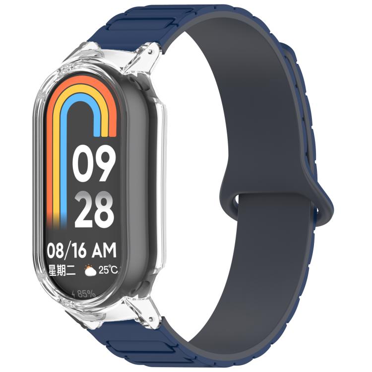 Para Xiaomi Smart Band 9/9 NFC Watch Case Correa de reloj de silicona magnética en forma de I integrada (azul grisáceo + transparente)
