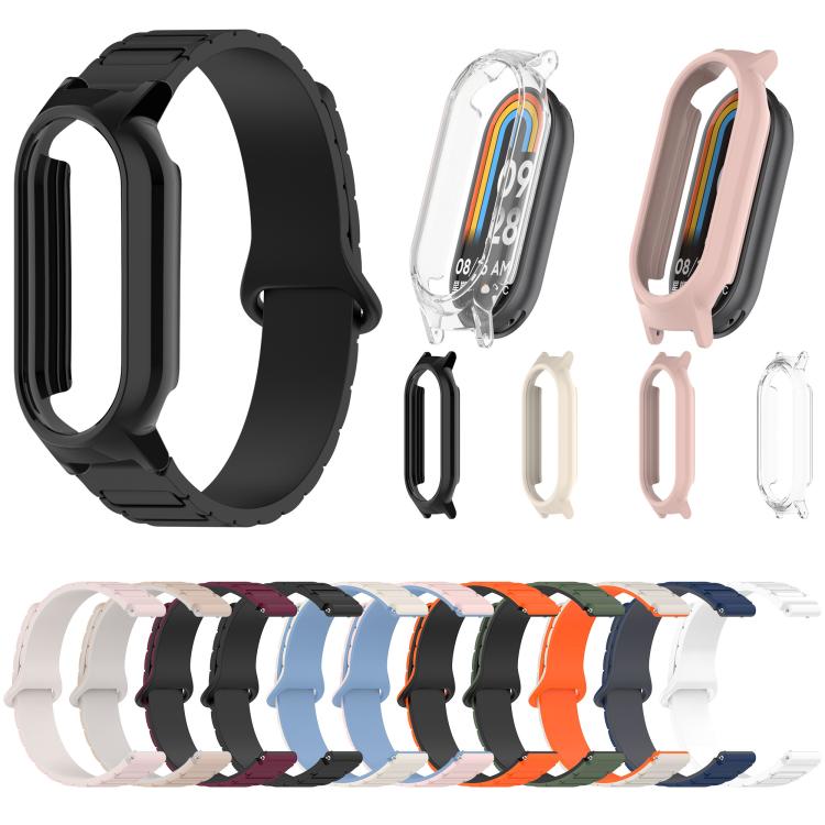 Para Xiaomi Smart Band 9/9 NFC Watch Case Correa de reloj de silicona magnética en forma de I integrada (blanco + rosa)