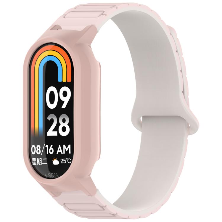 Para Xiaomi Smart Band 9/9 NFC Watch Case Correa de reloj de silicona magnética en forma de I integrada (luz de estrella rosa + rosa)