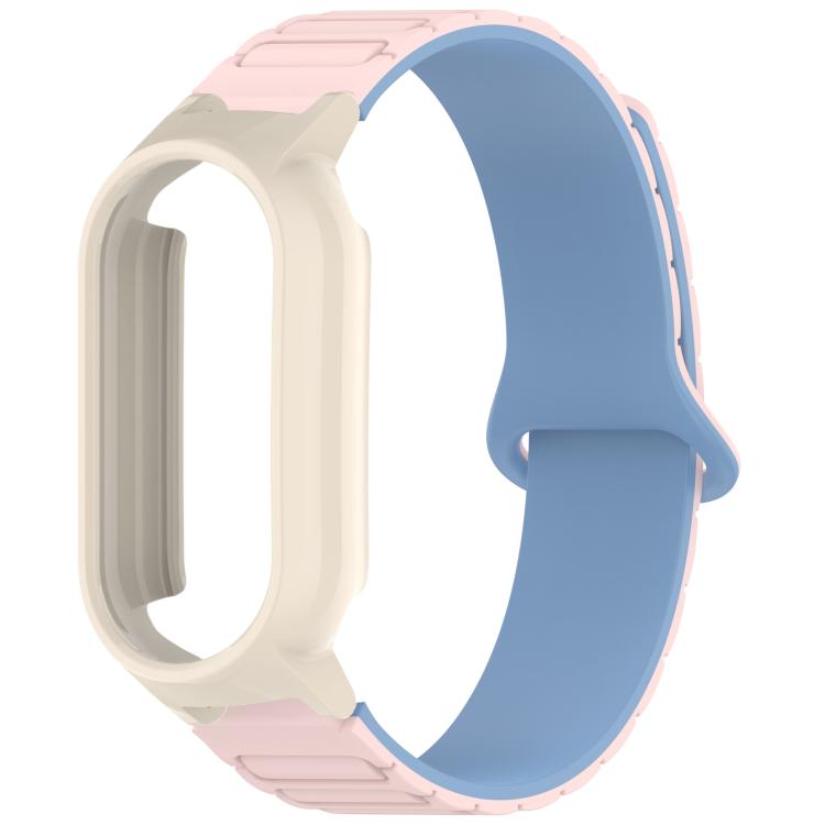 Para Xiaomi Smart Band 9/9 NFC Watch Case Correa de reloj de silicona magnética en forma de I integrada (rosa, azul y blanco)