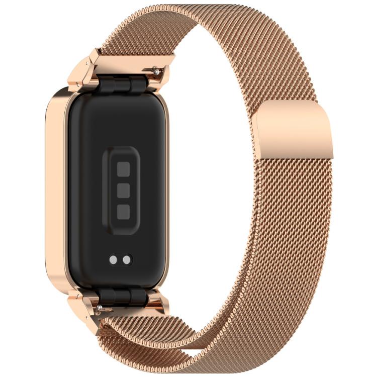 Para Xiaomi Smart Band 9 Pro / 8 Pro xDfind Watch Frame con correa de metal magnética Milanesa integrada (oro rosa)