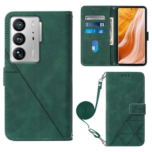 Funda de Cuero Crossbody 3D para ZTE Axon 40 Ultra con Tapa En Relieve (Verde Oscuro)