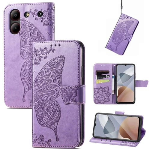 Funda para ZTE Blade A54 de Cuero con Relieve de Flor de Amor y Mariposa (Púrpura Claro)