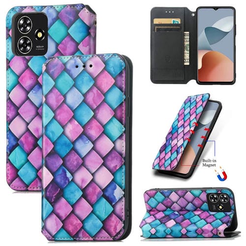 Estuche de Cuero Magnético Caseneo para ZTE Blade A73 5G (Escamas Moradas)