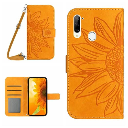 Funda Flip de Cuero ZTE Libero 5G Skin Feel con Cordón y Patrón Girasol (Amarillo)