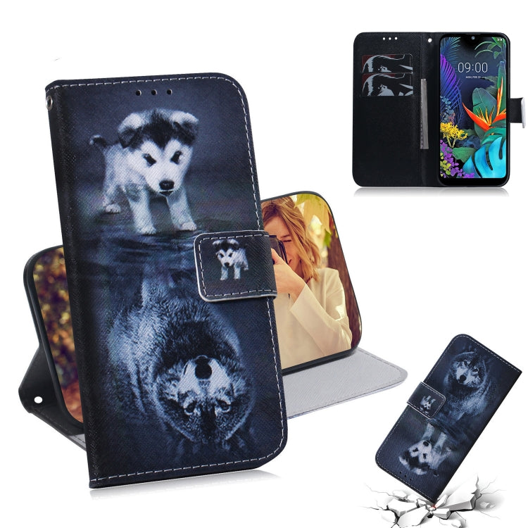 Funda de Cuero con Tapa Horizontal para LG K50 (Lobo y Perro) con Soporte y Ranuras para Tarjetas
