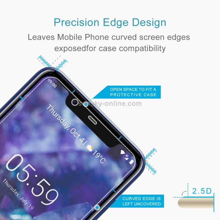 Película de Vidrio Templado 9H 2.5D 0.26mm para Nokia 5.1 Plus (Nokia X5)