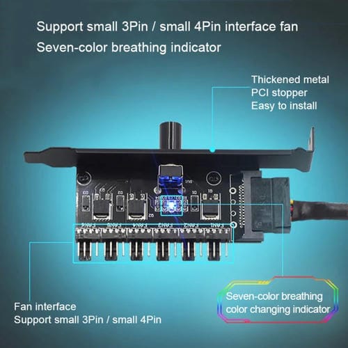 Es compatible con Ventiladores de interfaz pequeña de 3 pines y 4 pines.