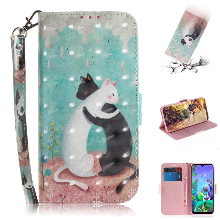 Funda de Cuero con Tapa Horizontal LG Q60 con Soporte y Ranuras Patrón Gato 3D Blanco y Negro
