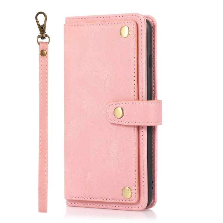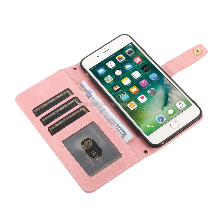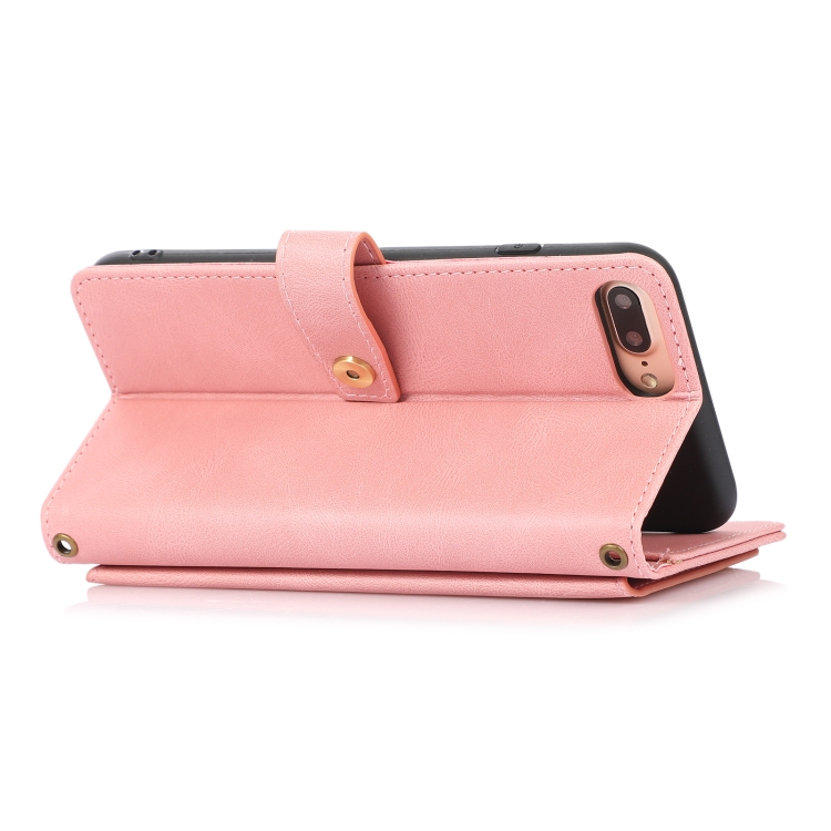 Funda de Cuero Flip Horizontal PU + TPU para iPhone 8 Plus y 7 Plus con Soporte, Ranura para Tarjetas, Billetera y Cordón (Rosa)