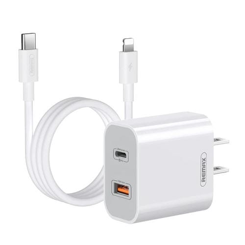 Cargador rápido Remax Rp-U68 20W Usb y Usb-C/Type-C enchufe EE. UU. (Blanco)