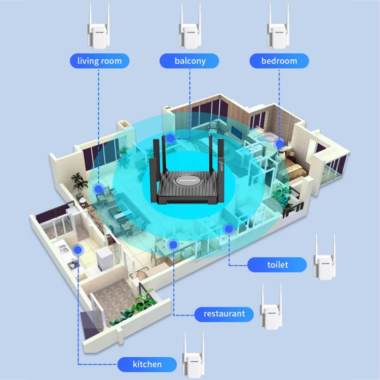 El producto (CF-WR301S V3) es un repetidor inalámbrico económico de 300 Mbps con diseño de doble antena que extiende eficazmente las señales WiFi, ayudando a los usuarios a superar fácilmente los puntos ciegos.Es ideal para la extensión WiFi en apartamentos grandes, dúplex, pequeñas y microempresas, y viviendas vecinas, eliminando los puntos ciegos y logrando una cobertura WiFi completa en toda la casa.