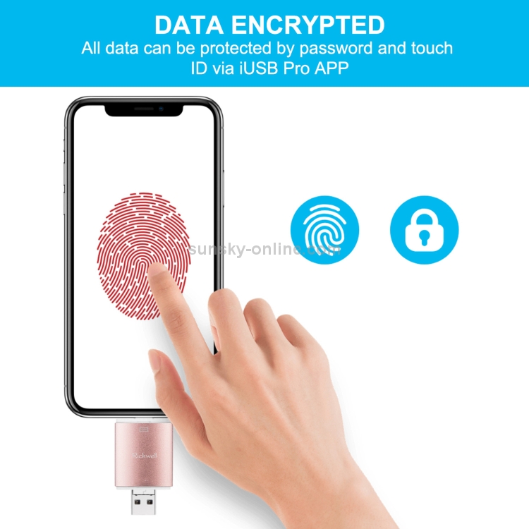 Disco Flash 3 en 1 Richwell 64G Tipo-C + 8 Pines + USB 3.0 Push-Pull Metal (Oro Rosa)
