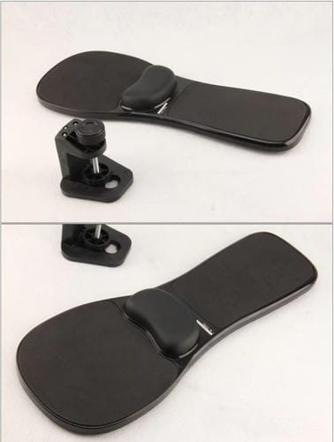 • Dimensiones: 458 x 180 mm; instalación adaptable en escritorio y silla; superficie con reposamuñecas integrado