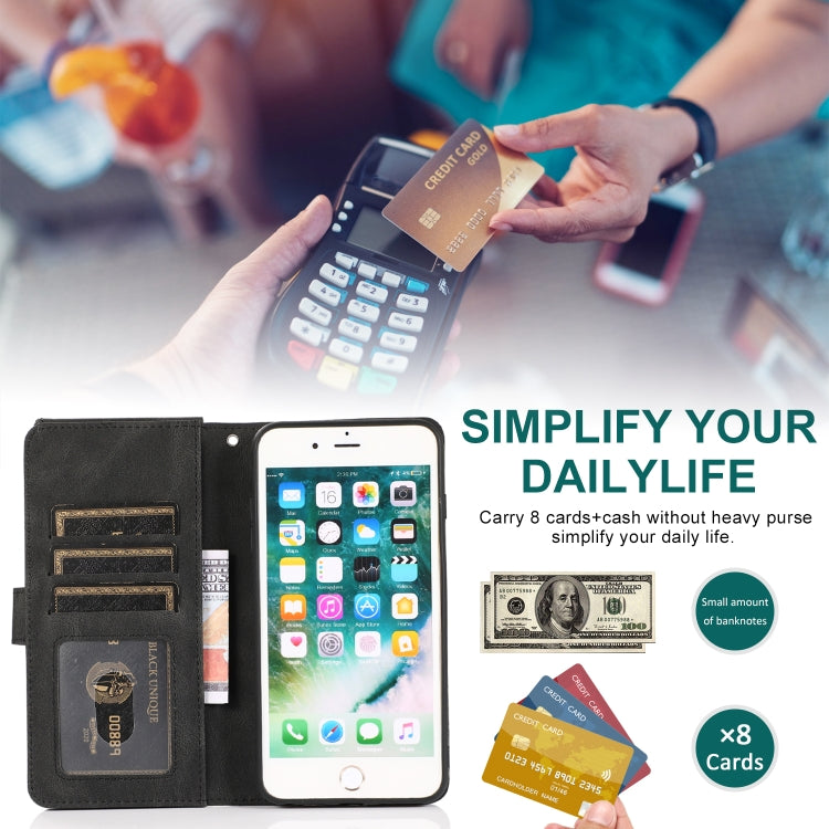 Funda de Cuero Skin-Feel Crazy Horse Texture Zipper Wallet Bag para iPhone 8 Plus / 7 Plus con Tapa Horizontal, Soporte, Ranuras y Cordón (Negro)