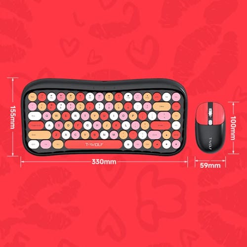 El Conjunto Inalámbrico T-Wolf TF660 combina un Teclado y un Mouse con tecnología dual 2.4G y Bluetooth 5.0, diseñado para ofrecer conectividad estable y sin demoras hasta 10 metros de distancia. El Teclado presenta 84 teclas con un diseño retro inspirado en máquinas de escribir, con teclas de material ABS que proporcionan una sensación mecánica realista y cómoda al tacto. El Mouse cuenta con 4 Botones y resolución ajustable en tres niveles (800, 1200 y 1600 ppp) para adaptarse a diferentes necesidades de precisión. Ambos dispositivos funcionan con Baterías AA (no incluidas) y están fabricados con componentes electrónicos de alta calidad, integrando ergonomía para un uso prolongado eficiente. Este Conjunto es compatible con equipos que soportan conexiones Inalámbricas 2.4G y Bluetooth 5.0, ideal para usuarios que requieren un sistema de entrada confiable y funcional en ambientes variados.