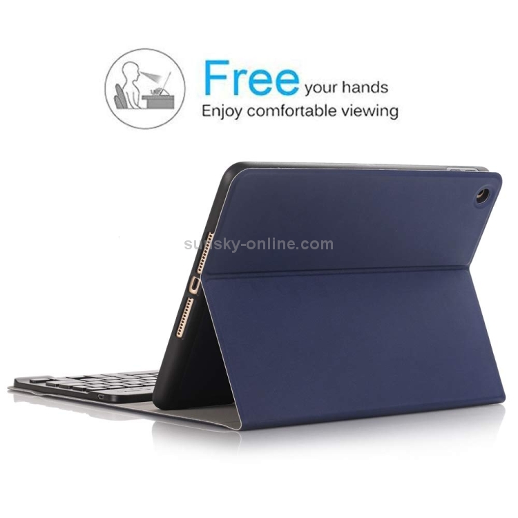 Teclado Bluetooth Desmontable + Funda de Cuero con Soporte y Portalápices para iPad Pro 9,7, iPad Air (Azul)