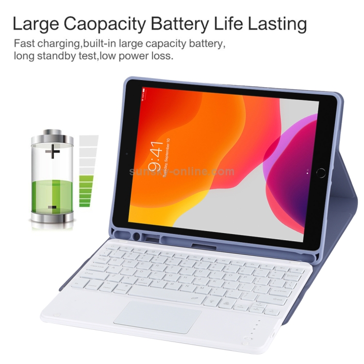 Teclado Bluetooth Tg-102Bcs desmontable con funda cuero microfibra para iPad 10,2 / iPad Air (2019) panel táctil retroiluminado (Morado)