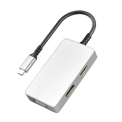 • Salidas HDMI (4K a 30Hz), DisplayPort (4K a 60Hz), VGA (1080p a 60Hz); Soporte de uso simultáneo de hasta dos Puertos con resolución máxima; Puerto USB-C PD con Carga rápida de 20V/5A (100W); entrada de audio de 3.5 mm con función de llamada; tamaño compacto de 9 x 4.8 x 1.6 cm y Cable de 12.5 cm