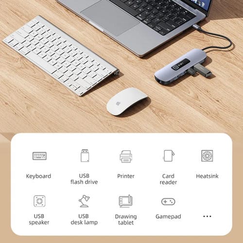 El Hub Tipo C Usams Us-SJ644 PD100W es un dispositivo multifuncional diseñado para ampliar la conectividad de Computadoras Portátiles y otros dispositivos compatibles con Puertos USB Tipo C. Fabricado en aleación de aluminio con un acabado en color Gris Metal, este hub integra 10 interfaces que permiten conectar simultáneamente periféricos como Mouse, Teclado, unidades flash USB, impresoras y Tarjetas de memoria SD y TF. Ofrece una interfaz PD3.0 con una potencia de salida de hasta 100 W para una Carga rápida y eficiente de laptops y Teléfonos Móviles. Además, soporta transmisión de datos a alta velocidad de hasta 5 Gbps y permite la Conexión a Pantallas externas con resoluciones HDMI de hasta 3840x2160P a 30Hz y VGA a 1080P a 60Hz, así como una Conexión estable mediante Puerto Gigabit Ethernet.