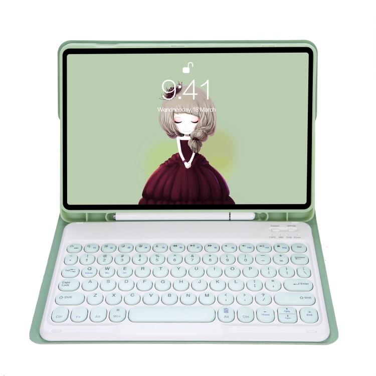 Funda Teclado Bluetooth Ya700B Candy Color Keycap Textura Redonda para Samsung Galaxy Tab S8 y S7 11" (Verde Claro)